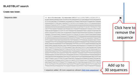 Paste in a sequence (the suggested format is FASTA) or upload a sequence as a file. Up to 30 sequences can be added. If inputting multiple species, make sure a header (for example a FASTA header) separates each one.