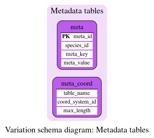 This table stores various metadata relating to the database, generally used by the Ensembl web code.