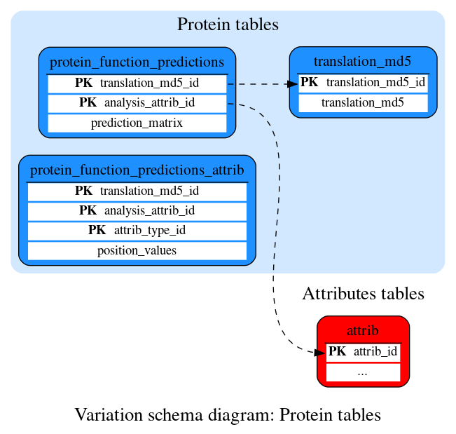 These tables define the protein prediction data.